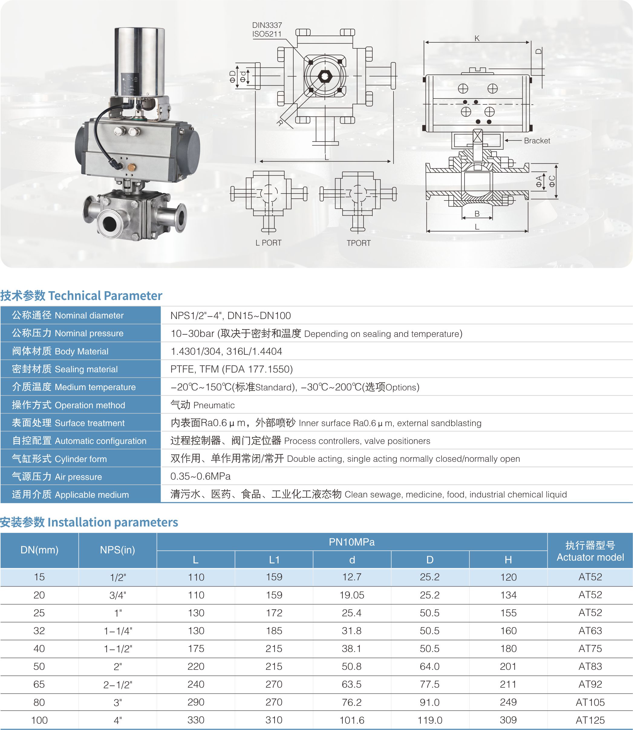氣動(dòng)衛(wèi)生級(jí)三通調(diào)節(jié)球閥